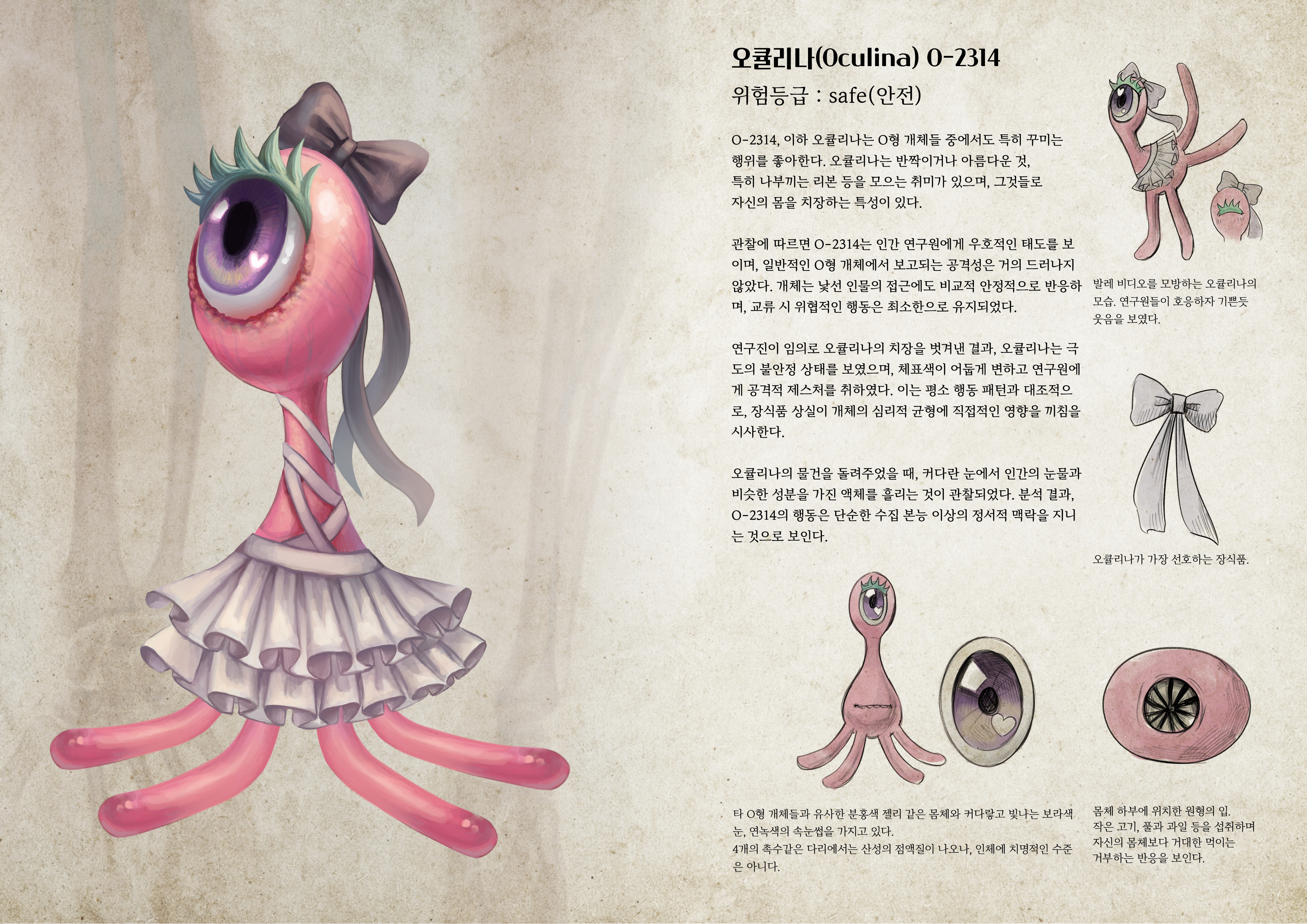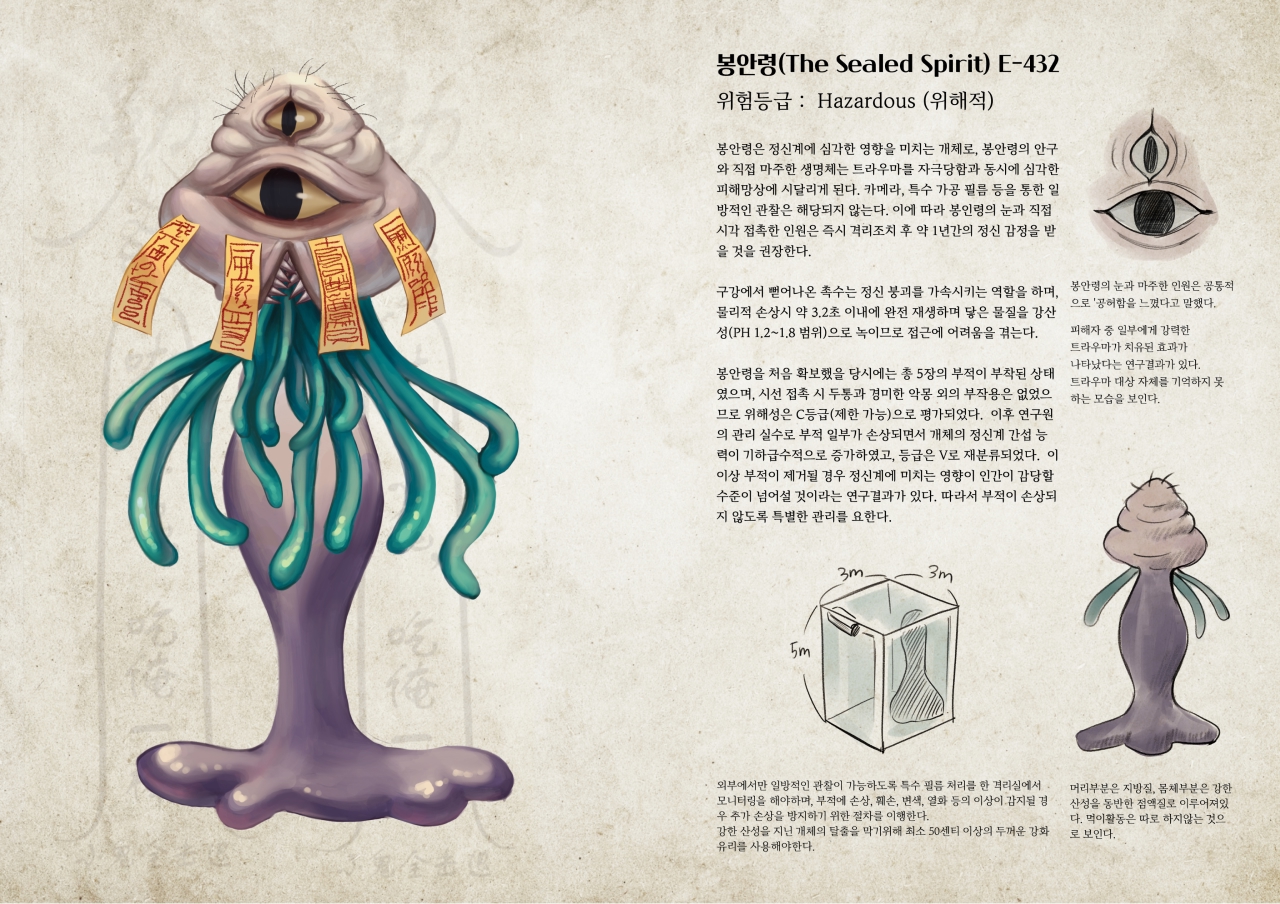 인간은 ‘알 수 없음’ 앞에서 두려움을 느끼며, 그 빈자리를 메우기 위해 다양한 크리처들을 상상해왔습니다. Uncanny Archive는 버려진 실험실에서 발견된, 이 기묘한 존재들에 관한 연구 기록을 모아 엮은 자료집입니다.