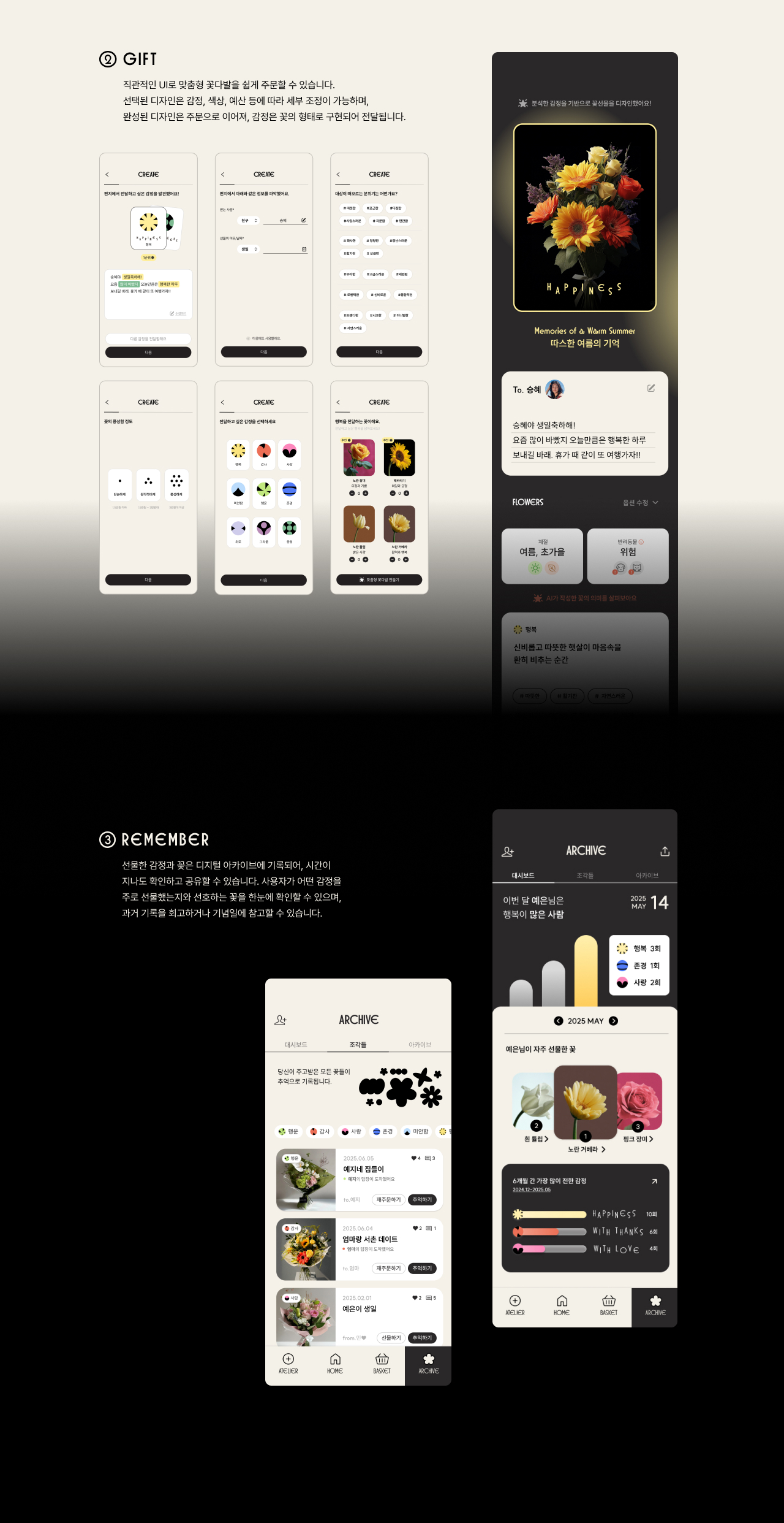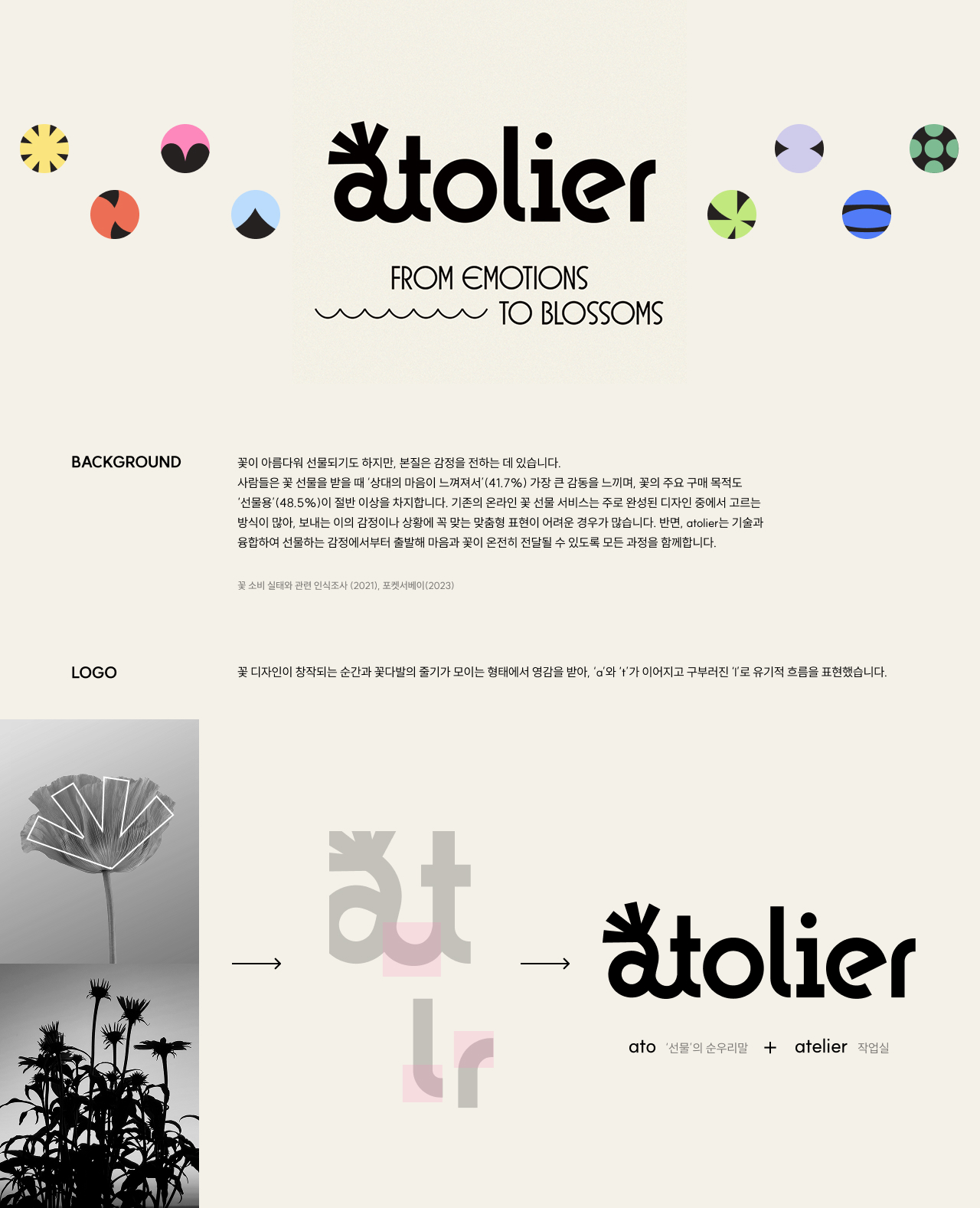 Atolier는 감정 기반 맞춤형 플라워샵 브랜드입니다. 꽃은 언어 대신 마음을 전하는 매개체로, 단순한 선물을 넘어 진정한 감정의 깊이를 담습니다. ‘감정 조각들’을 토대로 마음을 오롯이 전하는 새로운 꽃 선물 경험을 제공합니다.
