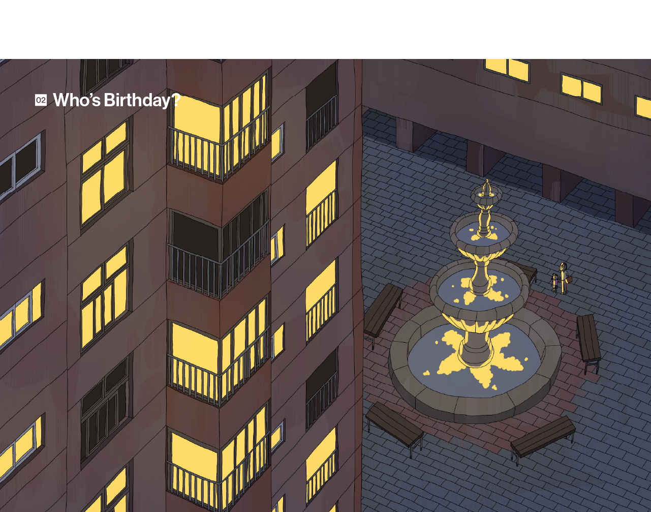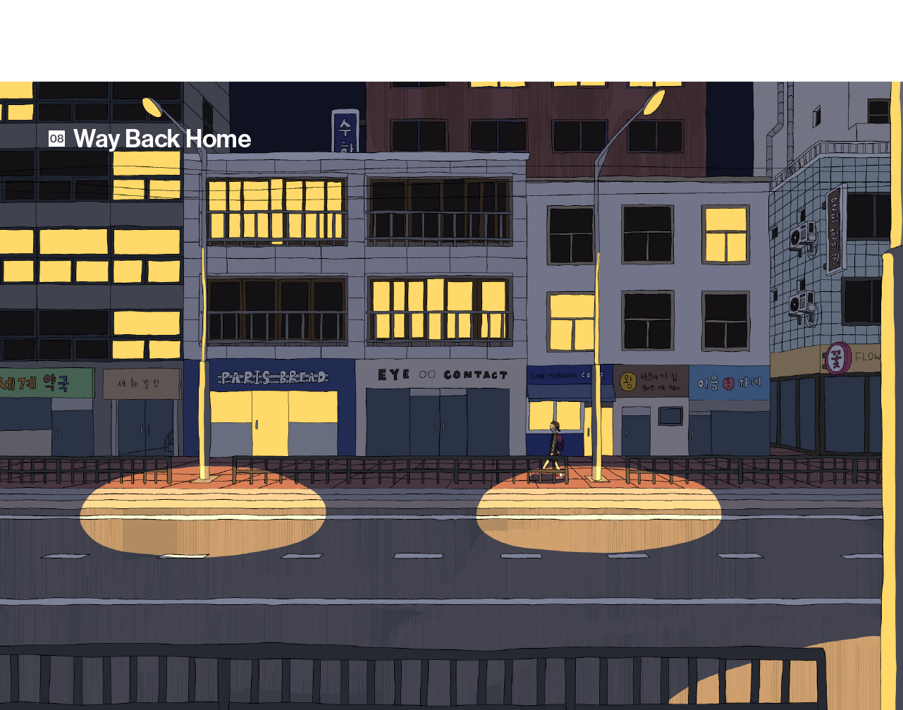 인생에서 기억에 남은 긍정적·부정적 경험을 일러스트레이션으로 재현하고, 그것들이 사실은 왜곡된 기억임을 깨닫는 과정을 담았다. 이를 통해 과거를 반복해서 돌아보는 것은 무의미하다는 메시지를 전하며, 일러스트레이션과 음악을 결합해 가상의 아티스트 앨범 형식으로 풀어냈다.