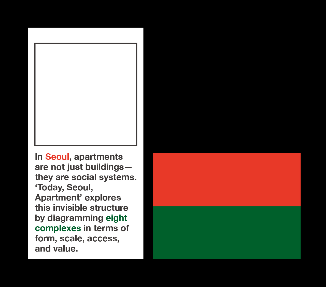 아파트는 서울의 구조와 계층을 비추는 도시의 지문이다. 본 프로젝트는 서울에 아파트가 들어선 흐름을 살피고, 8개 단지를 선정해 구조, 배치, 동선, 가격 등으로 시각화하여 아파트가 단순한 주거를 넘어 도시와 사회에 어떤 층위를 형성해 왔는지 탐구한다.