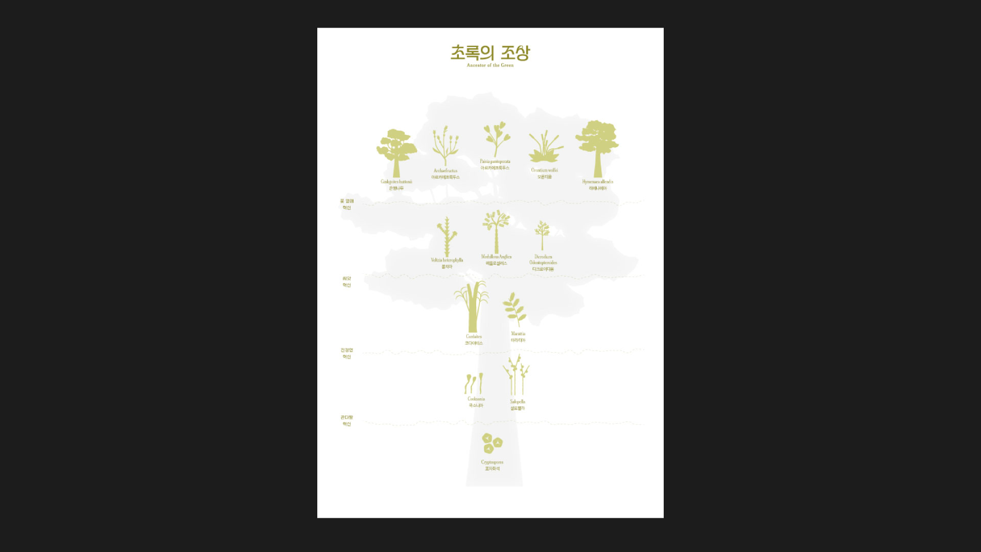 일명 ‘식집사’가 되면서 ‘내 반려식물의 근원은 어디에서 왔을까?’라는 물음이 자연스레 따라왔고, 식물의 진화의 역사와 갈래를, 존재적 기원을 알아야겠다는 결론이 섰다. 산발적으로 흩어져 있는 식물 종을 여러 가족으로 묶어보고 진화적인 관점에서 그 위치를 살펴본다.