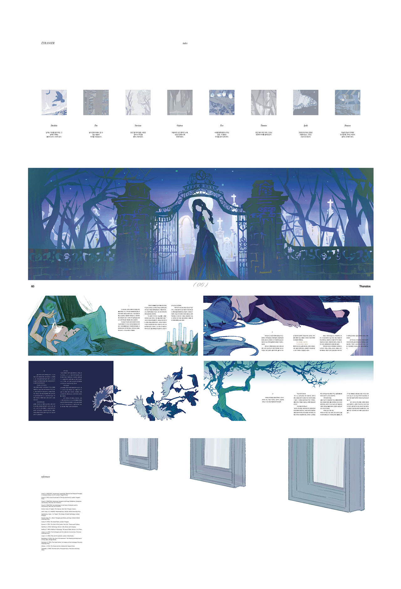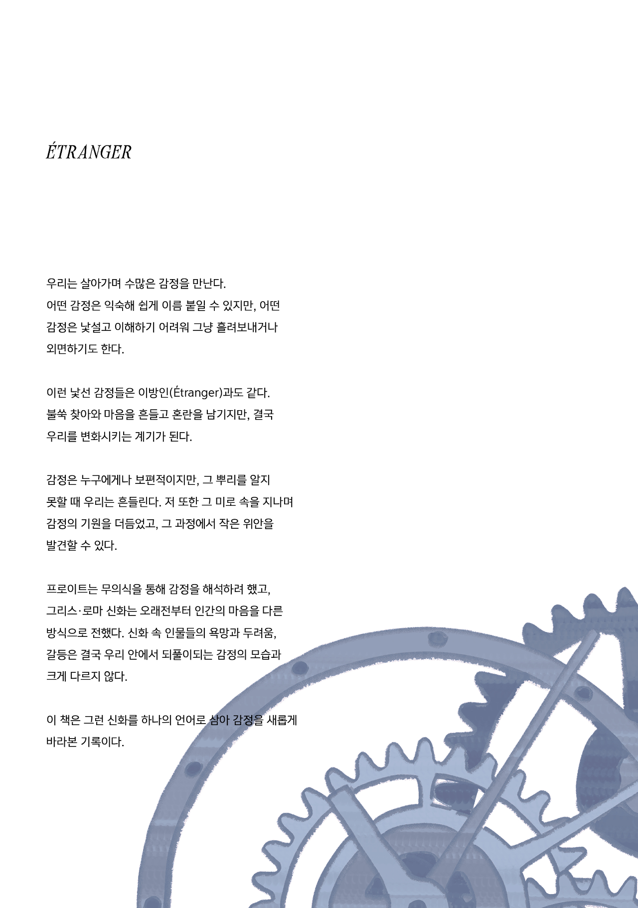 ÉTRANGER 프로젝트는 프로이트 심리학을 바탕으로 그리스·로마 신화를 재해석해 인간 감정의 기원과 원인을 탐구하는 작업입니다. 신화 속 상징을 시각화한 일러스트를 통해 감정의 형성과 흐름을 보여주며 이를 통해 감정의 본질을 이해하고 해결의 단서를 제시합니다.