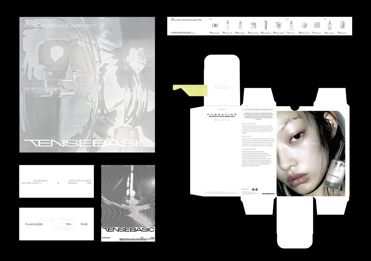 텐스베이직은 바쁜 현대인을 위해 최소한의 루틴으로 시간을 절약하는 스킨케어 브랜드이다. 효율적인 제품 구성과 직관적 디자인을 통해 “Flawless, On Time”의 가치를 전한다. 간결한 단계를 통해 완벽한 피부 표현을 완성하고, 실질적인 메이크업 시간을 단축을 돕는다.