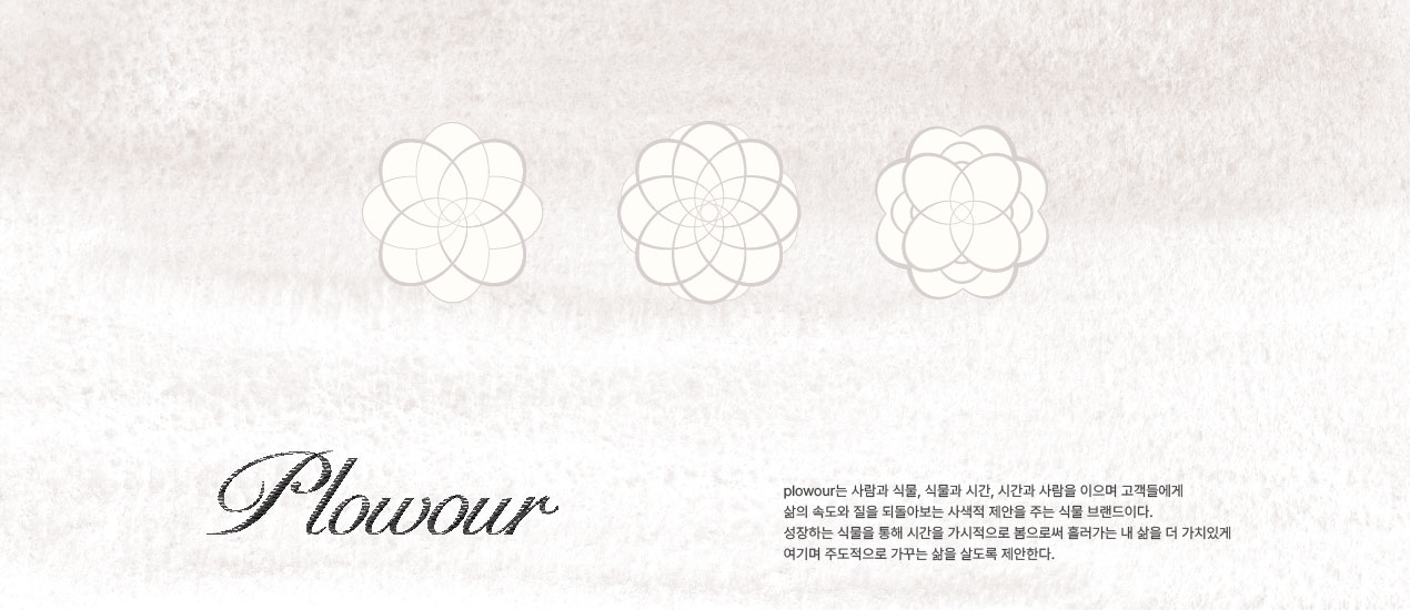 plowour는 사람과 식물, 식물과 시간, 시간과 사람을 이으며 고객들에게 삶의 속도와 질을 되돌아보는 사색적 제안을 주는 식물 브랜드이다. 성장하는 식물을 통해 시간을 가시적으로 봄으로써 흘러가는 내 삶을 더 가치있게 여기며 주도적으로 가꾸는 삶을 살도록 제안한다.