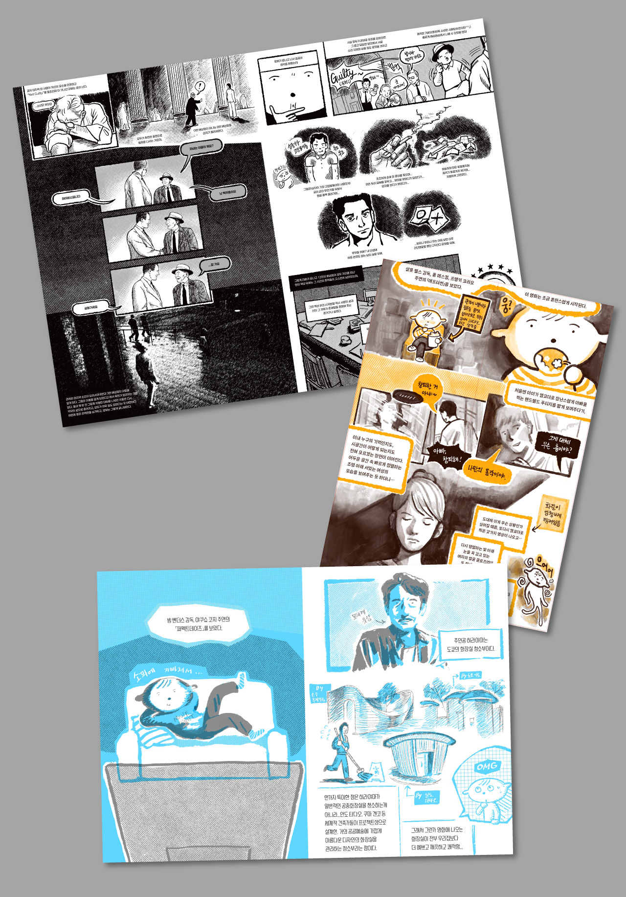 만화로 영화를 리뷰하며, 단순한 감상평을 넘어 읽는 재미와 새로운 시각을 선사하는 프로젝트입니다. 좋아하는 영화를 색다른 방식으로 기록하고 공유하며, 영화의 매력을 함께 발견해 나갑니다.